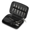 Этот компактный набор содержит 15 инструментов: 3 шестигранных ключа, 6 двухсторонних насадок с битами и ручки к ним. Весь набор компактно упакован в футляр с фиксирующими резинками, которые удерживают инструменты на створках.