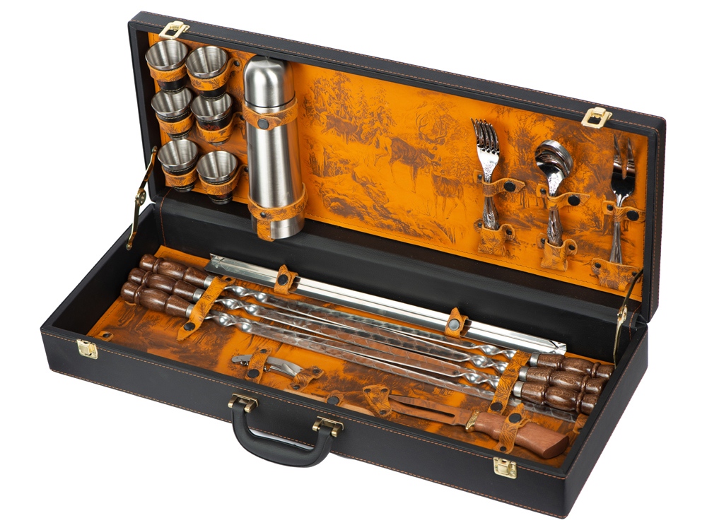 Кейс из сплит-кожи, с повышенной износостойкостью, внутренняя отделка натуральная кожа с художественным выжиганием.