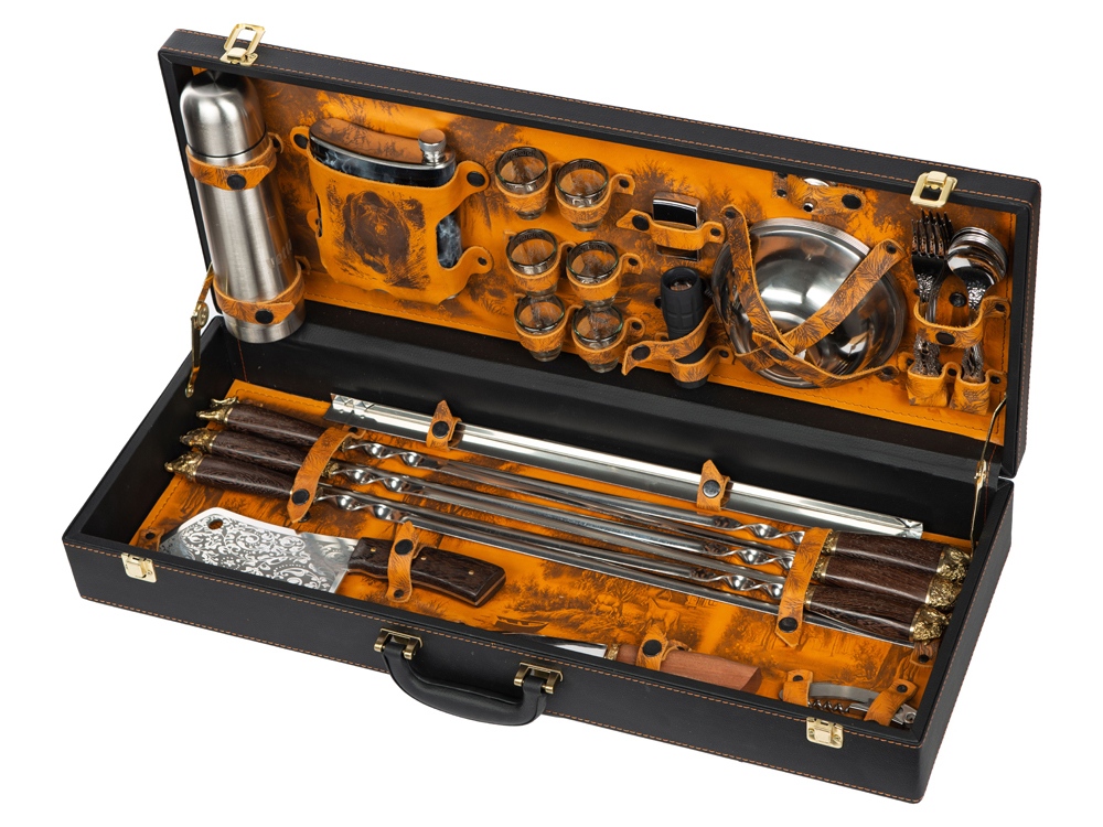 Кейс из сплит-кожи, с повышенной износостойкостью, внутренняя отделка натуральная кожа с художественным выжиганием.