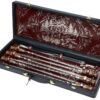 Солидный чемоданчик с набором шампуров и мангал не оставят равнодушными ни одного любителя шашлыка. Немаловажно, что ручка у шампуров деревянная - кроме красоты, это еще и удобно - дерево приятнее брать, оно не нагревается (если, конечно, не совать его в огонь). Кроме того, в подарке имеются нож сомелье, с помощью которого вы сможете с легкостью открыть бутылку.