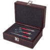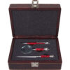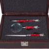 Подарочная упаковка: Набор представлен в жестком футляре из бордовой сплит- кожи с поролоновым ложементом, который гарантирует сохранность аксессуаров и подчеркивает ценность подарка.