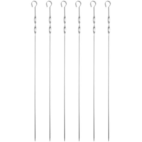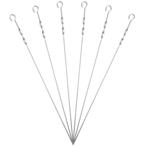 Длинные шампуры подходят для мангалов шириной до 40 см. Спираль у рукоятки позволяет фиксировать шампур при переворачивании шашлыка во время приготовления.
