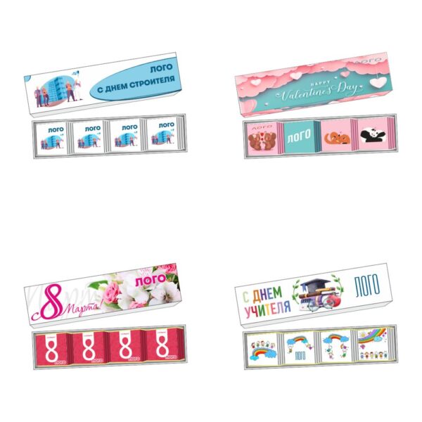 - Обертка с полноцветной печатью на каждой плитке шоколада.