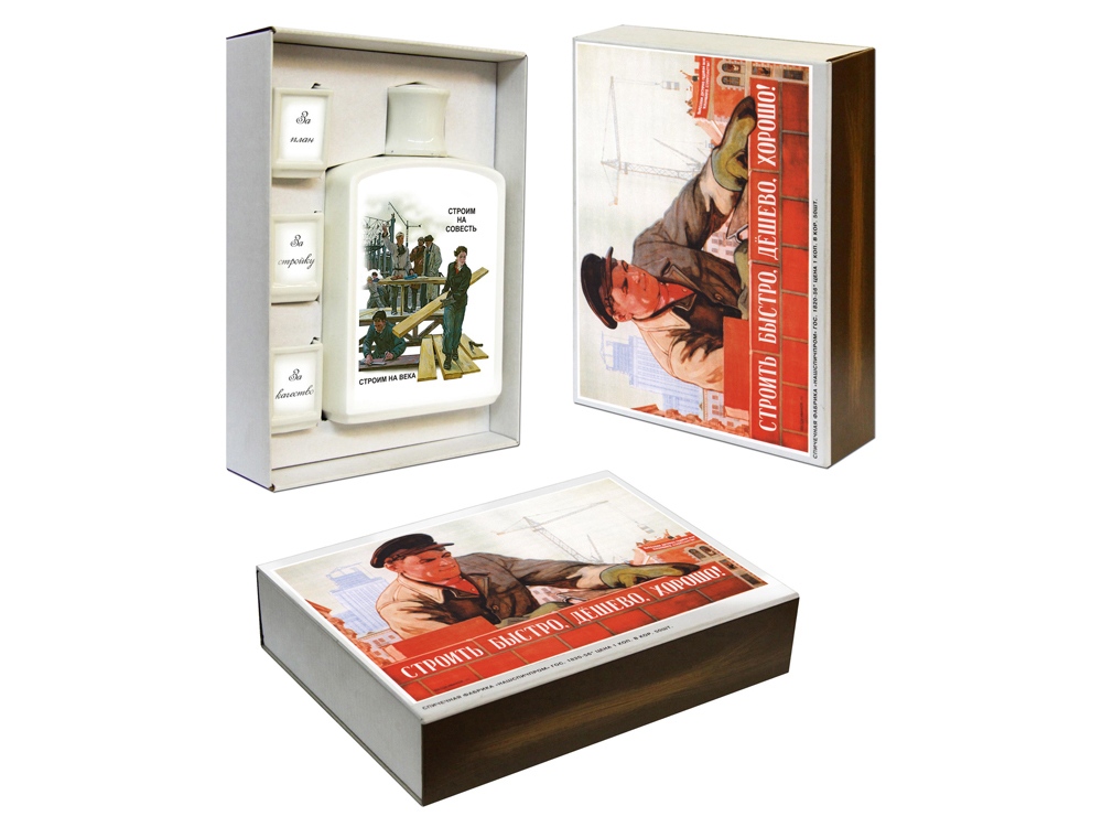 Оригинальный набор «спички» можно отнести к разряду необычных подарков. В коробке стилизованной под большой коробок спичек вы найдете оригинальный графин из фарфора с тематическим изображением и три небольшие стопки. Вместе с коробкой набор весит 2 кг. Набор «Спички» - сравнительно недорогой бизнес подарок, который можно персонализировать. Приобретая данный набор вы можете быть уверены в том, что это уникальный и оригинальный подарок.