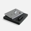 Коробка с флокированным ложементом выполнена из переплетного картона, кашированного дизайнерской бумагой Majestic.