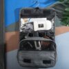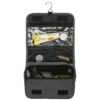Несессер Planar оснащен металлическим крючком для подвешивания, который в сложенном виде убирается внутрь и не будет вам мешать. Для переноски несессер имеет ручку снаружи, а еще вы найдете плоский вместительный карман на его задней стороне. Клапан несессера закрывается на липучки и имеет три кармана — большой на молнии из прозрачного материала, который легко моется, даже в случае, если флакон изнутри разгерметизировался, и два из сетки, куда можно положить необходимые мелочи и которые удобнее использовать в висящем виде.