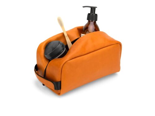 Несессер, он же косметичка, он же Dop Kit, предназначен для хранения и переноски всяких дорожных принадлежностей, предметов гигиены, инструментов или каких-нибудь зарядок для гаджетов. Несессер изготовлен целиком из натуральной кожи и закрывается на молнию.