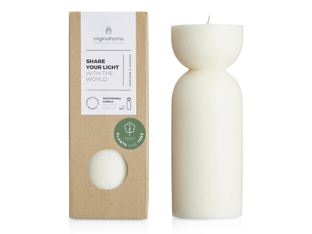 Органическая свеча, изготовленная вручную из воска на растительной основе, не содержащего парафина. Свеча не имеет запаха, имеет фитиль из 100% хлопка и горит чисто. Каждая покупка способствует посадке дерева для фермеров в Африке и поддерживает специальный проект справедливой торговли на острове Ява, Индонезия. Время горения свечи: 88 часов. Воск из пальмовых ядер.