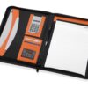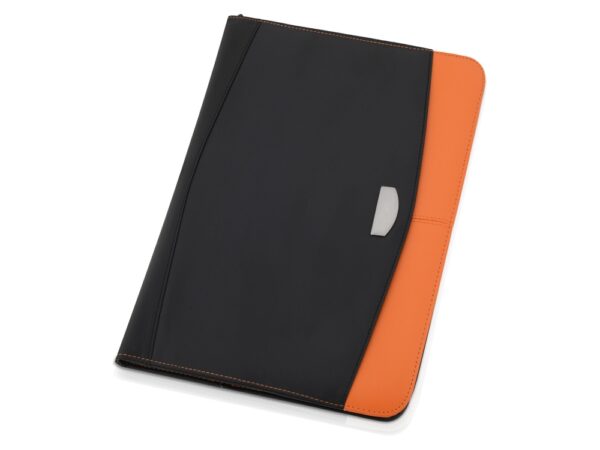 Стильная папка для документов Gabin – прекрасный подарок для делового человека. Папка формата А4 со сменным блокнотом и встроенным калькулятором. Сделана из искусственной кожи, особенно стильный вид ей придает цветная отделка внутри и снаружи. На металлический шильд можно нанести гравировку.