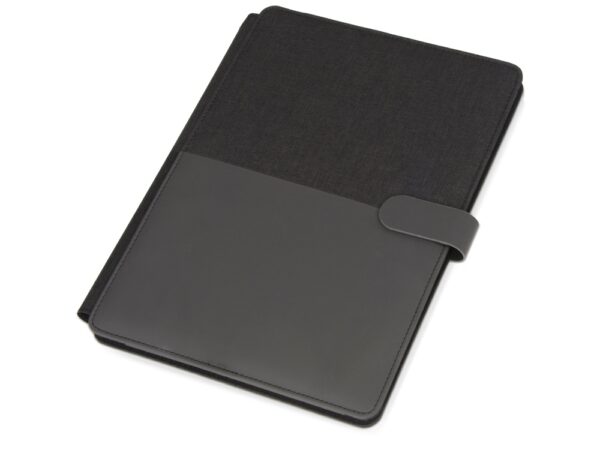 Стильная папка для документов формата А4 с комбинированной обложкой из текстиля и искусственной кожи. Удобный внутренний органайзер имеет карман на застёжке для планшета, блокнот для записей с линованной бумагой.