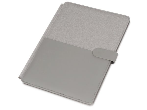 Стильная папка для документов формата А4 с комбинированной обложкой из текстиля и искусственной кожи. Удобный внутренний органайзер имеет карман на застёжке для планшета, блокнот для записей с линованной бумагой.