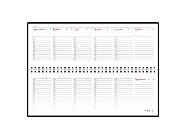 Недатированный планинг размером 305*130 мм состоит из 128 страниц с креплением на металлическом гребне. Используется высококачественная белая бумага плотностью 70 г/км. Полезная справочная информация на 14 страницах пригодится в бизнесе и повседневной жизни (телефонные коды России и мира, праздники, единицы измерения, таблицы размеров, часовых поясов и т.д.)