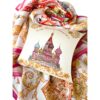 Сказочный вид собора отражен на золотом фоне новинки от бренда «Русские в моде» by Nina Ruchkina. Настоящее восьмое “чудо Света” обрамлено царскими коронами и райскими птицами, свидетельствующими об уникальности и роскоши этой исторической достопримечательности, отстроенной 1 октября 1552 года на праздник Покрова Богородицы.