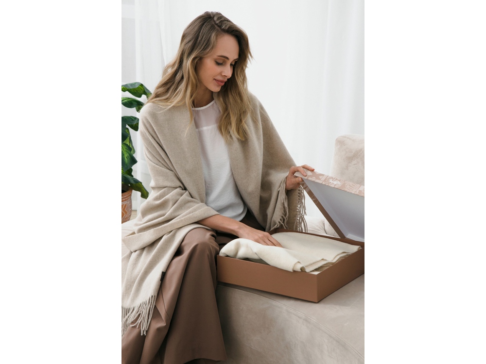 • Высококачественный плед от итальянского бренда Marzotto изготовлен из натурального кашемира.
