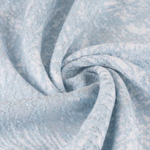 Серебристые и жемчужные оттенки люрекса, добавленные в основной материал, придают узору особую глубину и блеск.