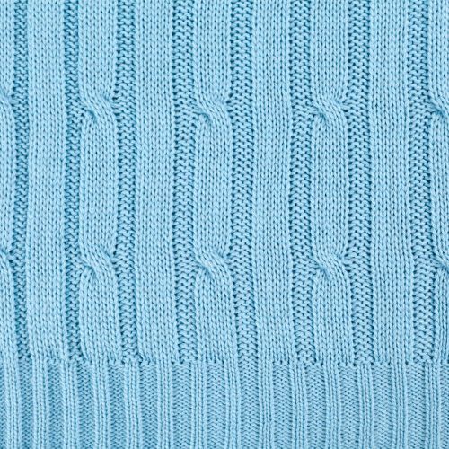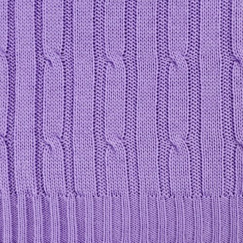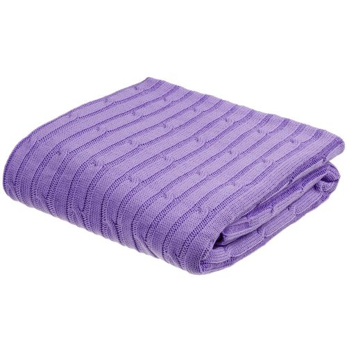 Модель: однотонный плед с фактурной вязкой, которая позволяет сделать его воздушным и объемным. Чередуя различные типы петель на гладком полотне, можно вывязать любую графику — логотип, текст, товарный знак.