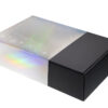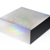 Подарочная коробка из прочного микрогофрокартона, кашированная бумагой с матовой ламинацией, выглядит элегантно и надёжно защищает содержимое. Новогодний голографический шубер с мерцающими серебристыми переливами придаёт ей праздничный блеск и делает каждый подарок по-настоящему особенным.