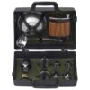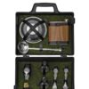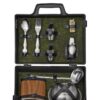 Все элементы набора выполнены из качественной нержавеющей стали, что обеспечивает долговечность и легкость в уходе. Упакованы в пластиковый кейс и надежно закреплены ремешками из натуральной кожи, что обеспечивает удобство транспортировки и сохранность содержимого.