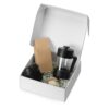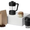Набор "Бодрое утро" содержит все необходимое для действительно приятного пробуждения. В нем вы найдете все, что нужно для приготовления вашей первой чашечки кофе с утра: френч-пресс, упаковку робусты темной обжарки, стакан с силиконовыми деталями и баночку крем-меда, который составит прекрасную пару крепкому напитку. Набор упакован в белую картонную коробку и переложен бумажным наполнителем.