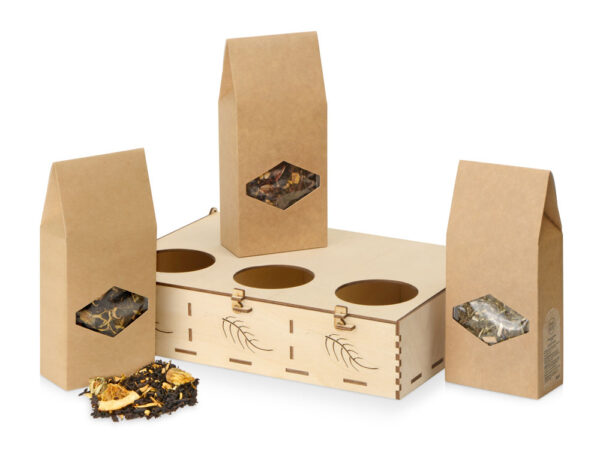В продуктовый набор “Чайный лист” от бренда “Eat&Bite” входят три замечательных чая: фруктовый “Глинтвейн”, черный “Апельсин с имбирём”, травяной “Вечерний”. Набор чая самый универсальный подарок для человека, которого вы уважаете и цените. Чая никогда не бывает много, широкая палитра вкусов в нашем наборе, позволит угодить любому гурману. С помощью наших напитков можно каждый вечер создавать свое особенное настроение. Продуктовый набор отлично сочетается с десертами: вареньем, медом, драже из молочного шоколада и крем-мёд.
