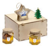 Оригинальный подарочный набор, в который входят: мед с кешью и мед с миндалем, а также новогодние украшения для вашей елки. Украшения выполнены вручную из березовой фанеры и будут замечательным подарком для любителей handmade игрушек. Набор упакован в стильную коробку с разделителями и эстетически дополнен крафтовым бумажным наполнителем. Оригинальный и необычный подарок для любителей эко-тематики.