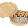 Подарочный набор для сыра в деревянной упаковке включает в себя три вида ножей и одну вилку. С помощью приборов можно нарезать сыры разных сортов. Набор упакован в деревянную подарочную коробку, которую можно использовать для хранения этих инструментов. Удобный поворотный механизм позволяет использовать крышку в качестве разделочной доски. Специальные выемки в коробке фиксируют приборы в безопасном положении.