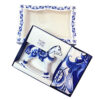 Платок «Гжель» от бренда «Русские в моде» выполнен в технике знаменитой кобальтовой росписи. Узоры в тонких оттенках синего цвета, размещенные на белом фоне, — один из самых распространенных рисунков гжель, чья форма столетиями доводилась мастерами до совершенства. На полотне восхитительные соцветия тугих бутонов и ажурных лепестков гармонично соседствуют с узнаваемыми сине-голубыми завитками, спиралями и линиями.
