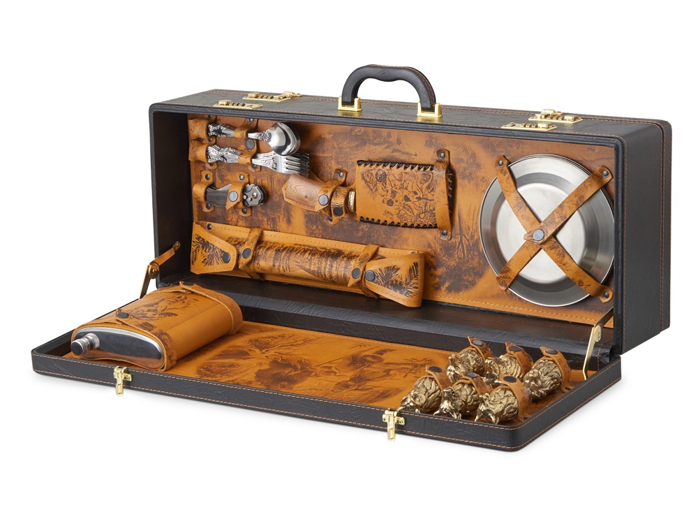 Кейс из сплит-кожи, с повышенной износостойкостью, внутренняя отделка натуральная кожа с художественным выжиганием.
