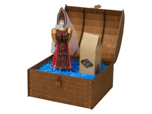 Подарочный набор с фарфоровой куклой и ароматным чаем.
