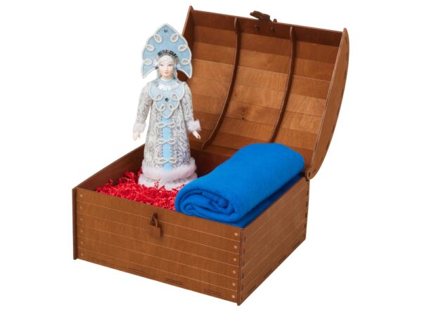 - Деревянный сундук с замочком – презентабельная и надежная упаковка, которая подчеркивает статус подарка и сохраняет его содержимое в идеальном состоянии.