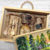 Подарочный набор в уникальном деревянном коробе ручной работы с рисунком на бересте: