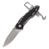Складной нож оснащен блокиратором от случайного закрывания, что делает его безопасным в работе. В рукоять ножа также встроены отвертка, нож для ремня безопасности и серрейтор. Карабин позволяет прикрепить нож к рюкзаку или поясному ремню, чтобы обеспечить наиболее удобный и быстрый доступ к инструменту.