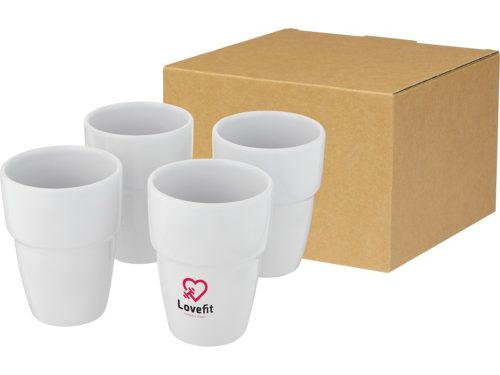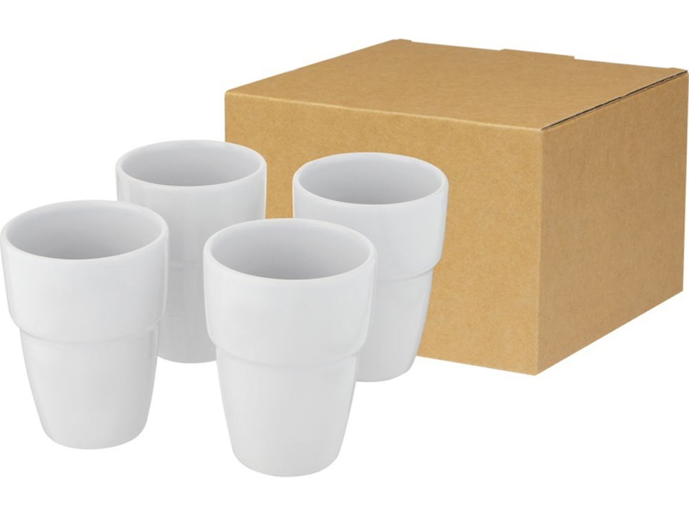 Подарочный набор из четырех керамических кружек, которые можно ставить друг на друга, за счет чего они занимают мало места и имеют аккуратный вид в офисе или дома. Объем 280 мл. Можно мыть в посудомоечной машине независимо от методов нанесения печати. В подарочной коробке из переработанного картона.