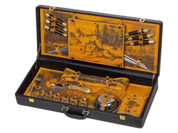 Кейс из сплит-кожи, с повышенной износостойкостью, внутренняя отделка натуральная кожа с художественным выжиганием.