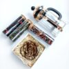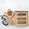 Набор упакован в коробку из переплетного картона, кашированного дизайнерской бумагой Malmero.