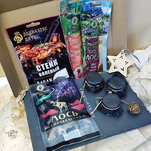 - Стейк вяленый кабан : мясо кабана, посолочная смесь(соль поваренная, фиксатор окраски-нитрит натрия), сахар, специи(перец черный, кориандр, чеснок)