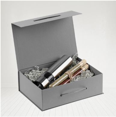 Набор упакован в подарочную коробку из переплетного картона, кашированного гладкой дизайнерской бумагой Malmero, с крышкой на магните.