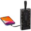 - Аккумулятор на 10000 мАч обеспечит длительное время работы гаджетов, таких как смартфоны, планшеты, наушники и другие устройства, которые нуждаются в зарядке в любое время. Это особенно удобно в поездках, на прогулках или во время длительных мероприятий, когда доступ к электричеству ограничен.