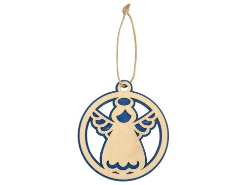 Елочная игрушка в виде главного символа праздника. новогоднего ангела – атмосферный и праздничный сувенир. Подвеска изготовлена из березовой фанеры и украшена тонировкой синего цвета, которая подчеркивает объемность игрушки и оттеняет текстуру неокрашенной части подвески. На одеждах ангела можно разместить ваши благопожелания или логотип.