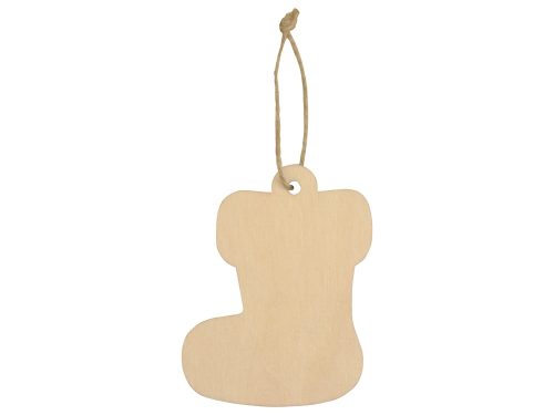 Оригинальное елочное украшение в виде новогоднего валенка, в который принято прятать подарки. Подвеска выполнена из березовой фанеры и тонирована в красный цвет. Ажурный красный слой подчеркивает натуральную текстуру и придает игрушке объемность. Поле для нанесения – верхняя часть валенка, отворот, на котором будут уместно выглядеть лого или надпись.