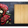 Разделочная доска для стейка из бамбука с канавкой по периметру, чтобы предотвратить разлив жидкости по столу. Разделочная доска из бамбука, который добывается и производится в соответствии со стандартами устойчивого развития.