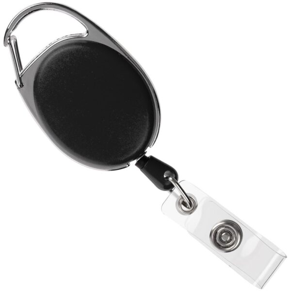 Ретрактор Access New с карабином, черный - купить оптом по цене 120.00 руб в Москве - интернет-магазин Сувенирная продукция и мерч с логотипом компании на заказ в Москве - Идеальные подарки клиентам | TairGifts