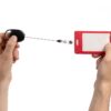 Ретрактор крепится к одежде с помощью карабина, а с другой стороны можно поместить бейдж, визитку или магнитную карту. В корпусе спрятан сворачивающийся шнур, который позволяет при необходимости демонстрировать содержимое держателя, не снимая его.