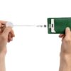 Ретрактор крепится к одежде, а с другой стороны можно поместить бейдж, визитку или магнитную карту. В корпусе спрятан сворачивающийся шнур, который позволяет при необходимости демонстрировать содержимое держателя, не снимая его.