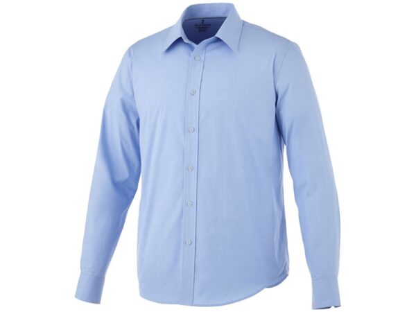 Рубашка с длинными рукавами Hamell. Скрытая пуговица под воротником. Стрейч-ткань. Регулируемый манжет на одной пуговице. Атласная окантовка внутренней части горловины. Гравированные пуговицы в цвет изделия. Комфортный ярлык-трансфер на изделии. Поплин из 96% хлопка и 4% эластана. 118 г/м².