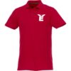 Мужское поло Helios с коротким рукавом. Отрезной-отрывной ярлык для комфорта. Воротник гладкой вязкой в рубчик. Планка с двумя пуговицами. Двойная строчка на воротнике и внизу изделия. Пуговицы в цвет изделия. Полоска на горловине в контрастном цвете. Трикотаж Piqué, 100 % хлопок. 180 г/м².
