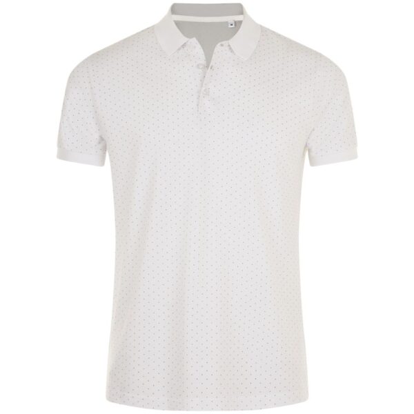 Рубашка поло приталенного силуэта с рисунком в точку. Лейбл производителя в боковом шве изнутри, в шве горловины - только бирка с размером, что позволяет вам нанести свой логотип.