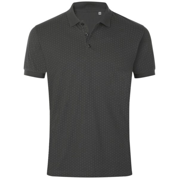 Рубашка поло приталенного силуэта с рисунком в точку. Лейбл производителя в боковом шве изнутри, в шве горловины - только бирка с размером, что позволяет вам нанести свой логотип.