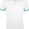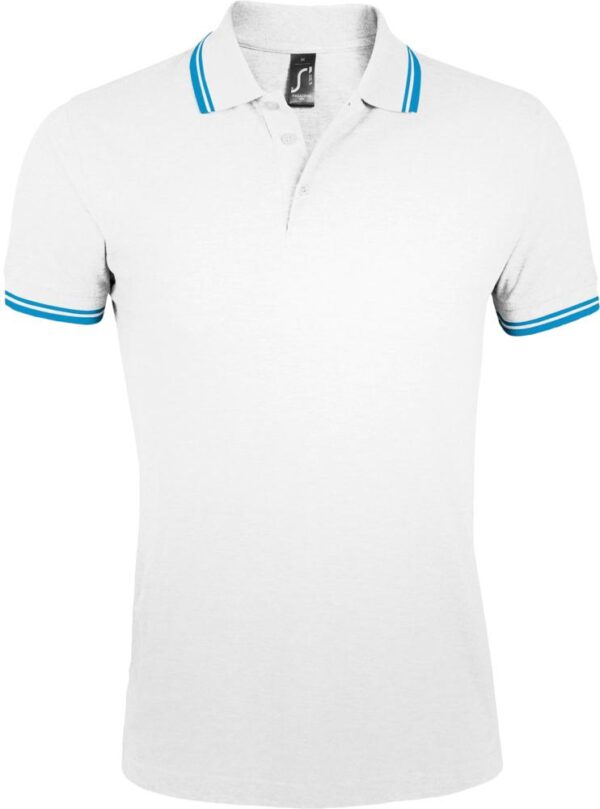 Рубашка поло мужская Pasadena Men 200 с контрастной отделкой, белая с голубым с логотипом купить оптом в Москве по низкой цене | Интернет-магазин Сувенирная продукция и мерч с логотипом компании на заказ в Москве - Идеальные подарки клиентам | TairGifts