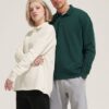 Рубашка поло из футера с длинным рукавом и спущенным плечом.